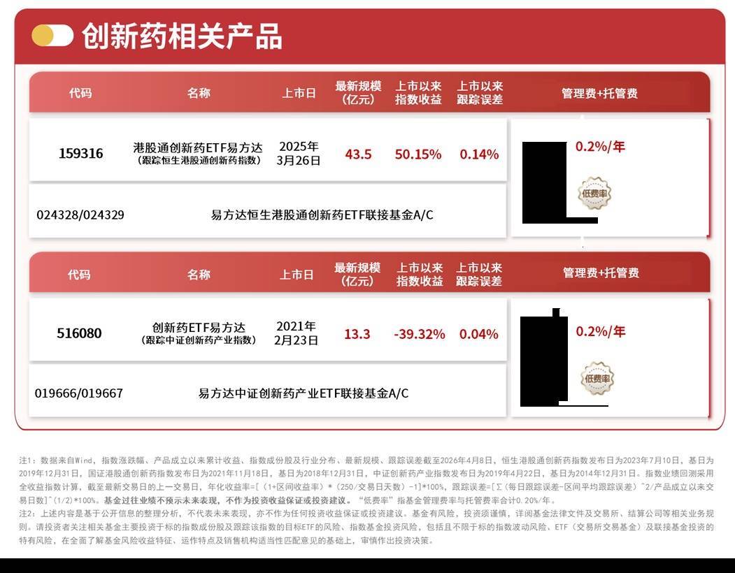 易方达基金旗下创新药相关ETF,详见下图: